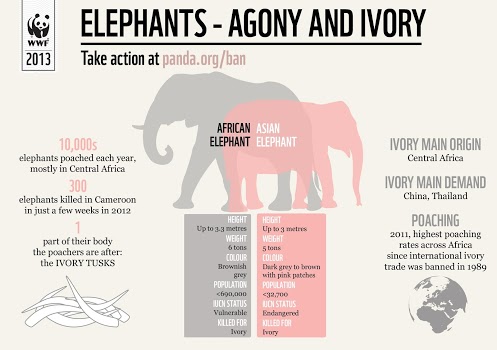 Every day in the savannas and forests of Africa, elephants are being gunned down for their ivory tusks. Across the continent, tens of thousands of these majestic animals are being slaughtered each year. In many places the species has already been poached to extinction. If we don’t act now there may be no wild elephants left. – WWF
