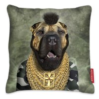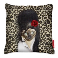 London based brand Takkoda (its name derived from the Sioux word meaning “friend to all”) is the one behind the – award winning – brand Pets Rock® which features a range of different products, printed with images of everyday pets which were photographed in their own homes to capture their natural expressions and then “dressed up” to look like stars (with the process of “extracting the celebrity ego from within the pet”, taking approximately “40 hours of digital work”)! Products include… well mostly anything you can imagine, from postcards to chopping boards & wall hangers to flip flops but the nicest ones are these cute faux suede, machine washable cushions. Some of them had me laughing out loud – and I think they’d add a pop of color & fun to any space. Just imagine ‘Andy Warhol’ on your sofa or home office chair… If nothing else, it would definitely make you smile! It also seems like there’s some real nice pet beds available to buy (examples here, here & here). Seriously, can you imagine your pet lounging lazily on one of them? Priceless… Here’s some of my favorite designs: