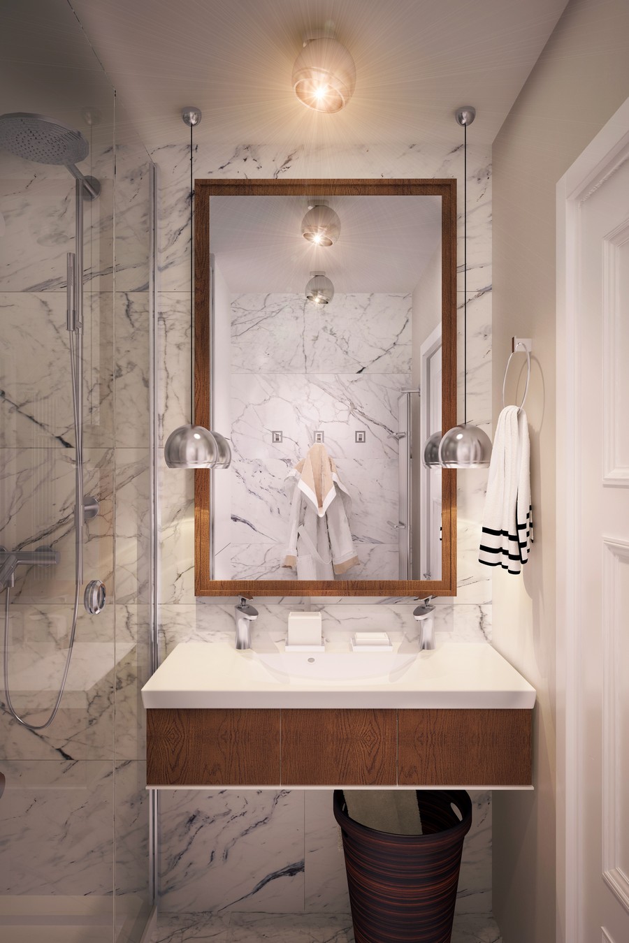 I’m loving everything about this, relatively small, apartment in St. Petersburg. The wooden details (especially that living room partition), earthy colors, clean lines and black & white accents are right up my alley. Plus, how about that bedroom? The bed panelling and light- flooded corner office space are to die for! If anything, I might have opted for plain white marble in the kitchen and bathroom instead but, overall, I find this to be a gorgeously designed space I’d most happily move into in a heartbeat (provided the usual sub-zero Russian temperatures were not in play, that is…).