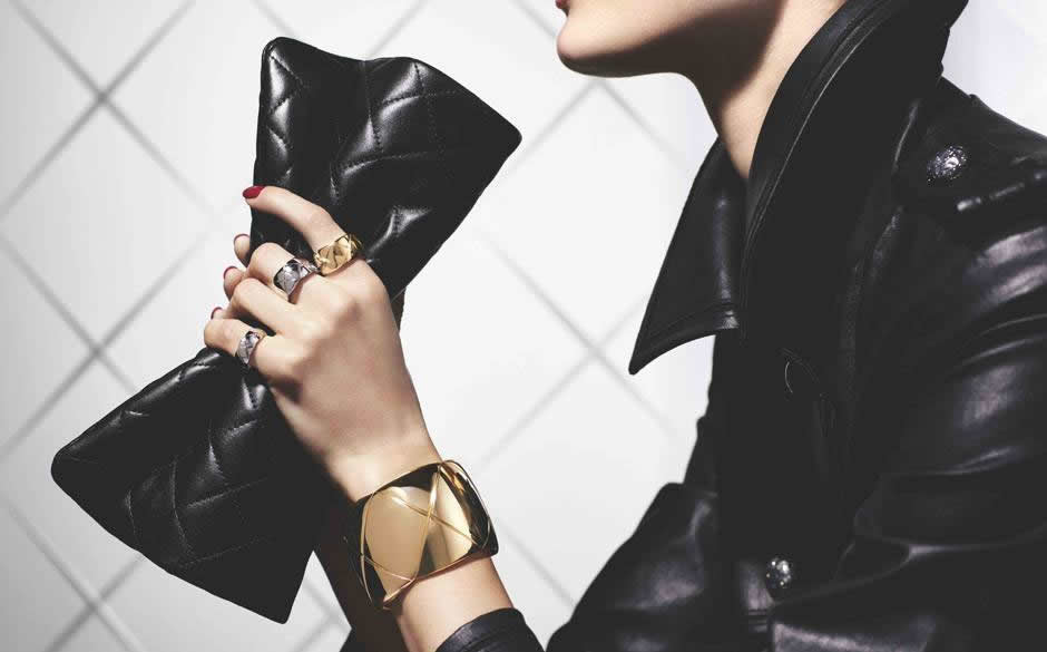 The six-piece collection comprises five rings and a cuff in 18-carat white and yellow gold – all featuring Chanel’s signature quilted motif (apparently known as the matelassé).